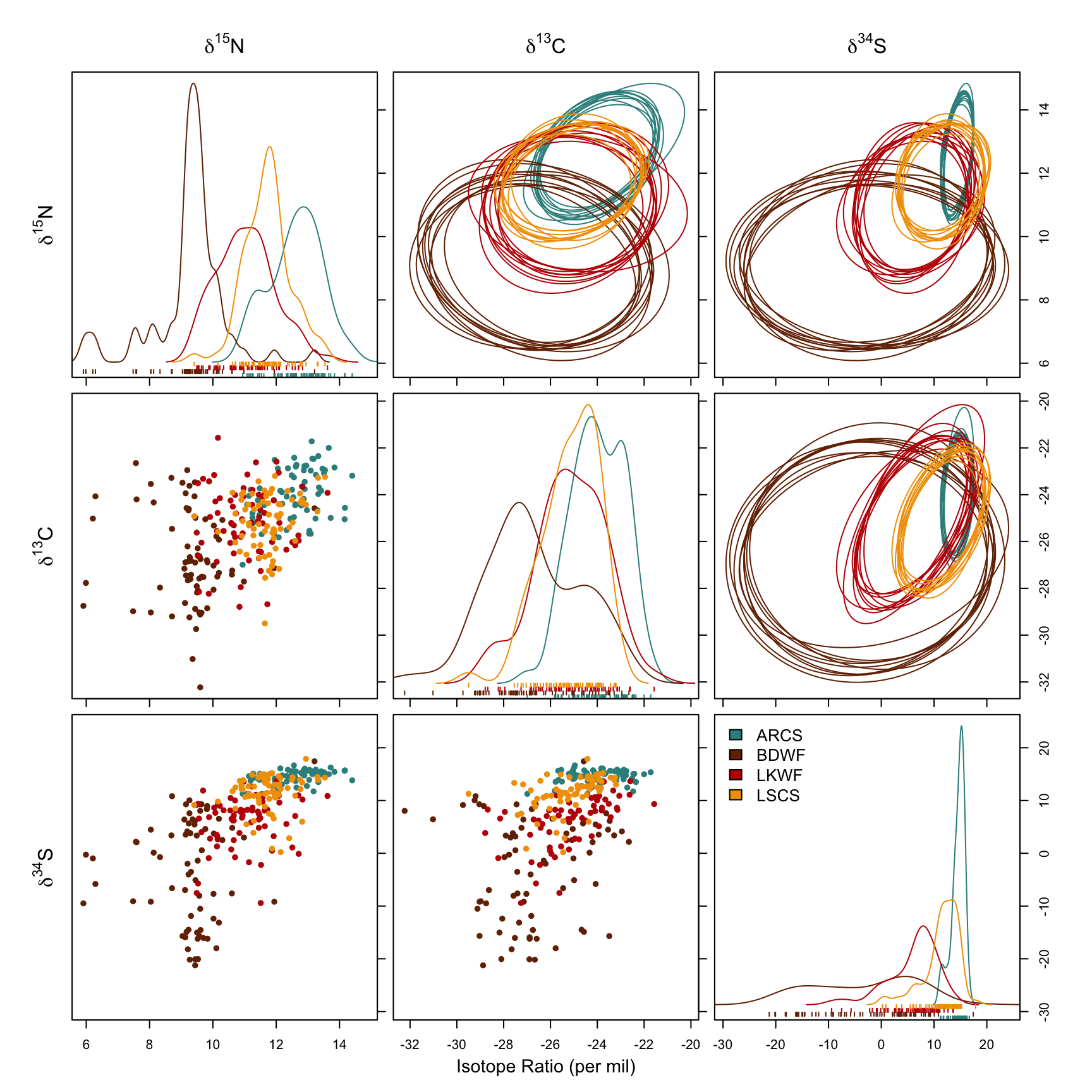 col = clrs, xlab = expression("Isotope Ratio (per mil)"))It’s a bit overwhelming plot. Take time to understand it.